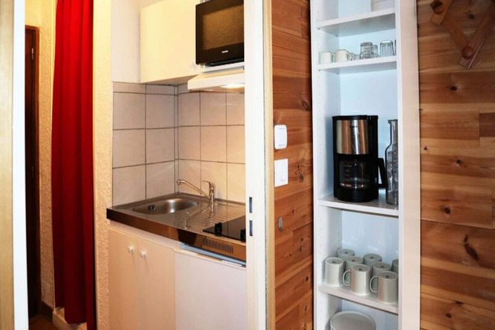 High above the serene valley of Embrun, this charming studio apartment in the heart of the Orres 1650 resort offers an unforgettable alpine escape. With the slopes just outside your door, every morning begins with the promise of adventure, as the crisp mountain air and breathtaking views of the southern peaks set the tone for your day. Whether you're here for the thrill of skiing or the tranquility of summer hikes, this residence invites you to immerse yourself in the beauty of the French Alps. \n\nDesigned to comfortably host up to four guests, the apartment features a thoughtful layout that maximizes both space and comfort. An alcove with two single bunk beds opens onto the cozy living area, where a double sofa bed provides additional sleeping arrangements. The kitchenette is equipped for preparing meals after a day of exploration, while the bathroom and separate WC ensure convenience for all. Step out onto the south-facing balcony to soak in the stunning views of the slopes, a perfect spot to unwind with a warm drink or simply take in the alpine ambiance. \n\nThe residence also includes practical amenities such as a ski locker on the ground floor, making it easy to store your gear and head straight to the slopes. Beyond skiing, the Orres 1650 resort offers a lively village atmosphere with restaurants, shops, and activities for all ages. In the warmer months, the region transforms into a haven for outdoor enthusiasts, with trails leading to panoramic vistas and opportunities for mountain biking or paragliding. \n\nWhether you're seeking an action-packed winter getaway or a peaceful summer retreat, this studio apartment provides the ideal base for creating lasting memories in the heart of the Alps.