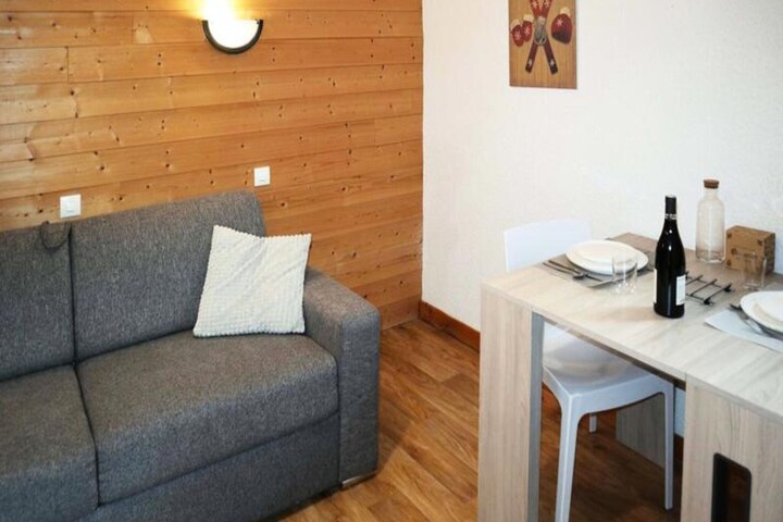 High above the sparkling valley, where the crisp mountain air invigorates the senses, this charming studio apartment invites you to experience the serene beauty of the Orres 1650 resort. Once a bustling hotel, the building has been thoughtfully transformed into a modern residence that blends alpine charm with contemporary comfort. With its prime location on the snow front, you’re just steps away from the slopes, making it a perfect retreat for ski enthusiasts or those seeking a tranquil mountain escape. From your east-facing balcony, soak in breathtaking views of the valley as the morning sun casts its golden glow over the landscape. \n\nDesigned for two guests, the studio features a cozy living room with a double sofa bed, a compact yet functional kitchenette, and a sleek shower room with WC. The linoleum flooring adds a clean and practical touch, while the layout ensures every corner is utilized for maximum comfort. A dedicated ski locker on the ground floor makes storing equipment effortless, allowing you more time to enjoy the pristine slopes. The residence is equipped with heating, ensuring a warm and inviting atmosphere after a day of adventure. \n\nBeyond the slopes, Orres 1650 offers a vibrant mix of activities and amenities. Explore charming local shops, indulge in hearty alpine cuisine at nearby restaurants, or simply wander through the picturesque village. In summer, the area transforms into a haven for hikers and cyclists, with trails that wind through lush forests and open up to panoramic views of the valley. Whether you’re here to ski, relax, or explore, this studio provides the perfect base for unforgettable mountain memories. \n\nLet the beauty of the French Alps inspire your next getaway—this cozy retreat is waiting to welcome you.