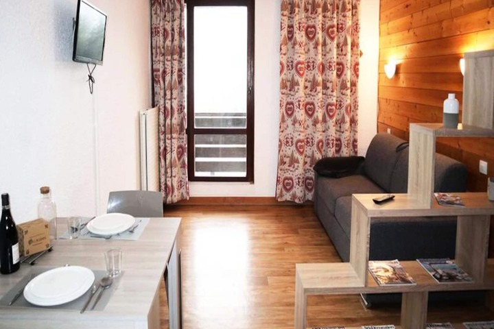 High above the serene valley of Les Orres, this charming studio apartment offers a cozy retreat for couples seeking a peaceful alpine escape. Once a bustling hotel, the property has been beautifully transformed into a modern residence, perfectly positioned on the snow front with direct access to the slopes. Imagine waking up to the golden hues of sunrise spilling across the valley from your east-facing balcony, setting the tone for a day of adventure or relaxation in the heart of the French Alps. \n\nDesigned with comfort in mind, the studio features a welcoming living space with a double sofa bed, a compact yet functional kitchenette, and a sleek shower room with WC. The linoleum flooring adds a touch of practicality, while the balcony provides a tranquil spot to enjoy the breathtaking views. A ski locker conveniently located on the ground floor ensures your gear is always ready for the next outing, making this residence an ideal base for winter sports enthusiasts. \n\nBeyond the slopes, Les Orres 1650 offers a vibrant mix of activities and amenities. From charming restaurants serving local specialties to lively après-ski spots, everything you need is just steps away. In summer, the resort transforms into a haven for hikers and mountain bikers, with trails winding through lush forests and meadows. The nearby valley invites exploration, offering stunning vistas and opportunities to connect with nature. \n\nWhether you're here to carve through powdery snow or bask in the summer sun, this studio apartment promises a memorable stay in one of France's most picturesque alpine destinations.
