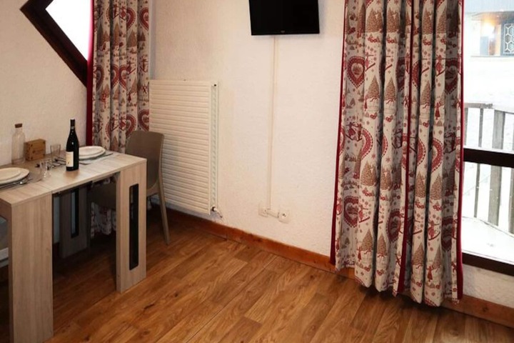 High above the serene valleys of the Hautes-Alpes, this charming studio apartment offers a cozy retreat in the heart of the Orres 1650 resort. Perfectly positioned right on the slopes, it invites you to wake up to the crisp mountain air and the gentle hum of skiers carving their way down the pistes. The east-facing balcony provides delightful views of the children’s ski school, making it an ideal spot for families or couples seeking a tranquil alpine escape. With its warm atmosphere and unbeatable location, this residence is a gateway to unforgettable mountain adventures. \n\nInside, the apartment is thoughtfully designed to maximize comfort and convenience. The living room features a double sofa bed, creating a relaxing space to unwind after a day on the slopes. The kitchenette, seamlessly integrated into the living area, is equipped for preparing hearty meals to enjoy in the cozy ambiance. A modern shower room with WC completes the layout, while linoleum flooring throughout adds a touch of practicality to the stylish interior. For added ease, a ski locker is available on the ground floor, ensuring your gear is always ready for action. \n\nBeyond the residence, Orres 1650 offers a vibrant mix of activities and amenities. From ski schools and equipment rentals to charming restaurants and après-ski spots, everything you need is just steps away. In summer, the resort transforms into a haven for hiking, mountain biking, and exploring the lush alpine landscapes. Whether you’re here for winter sports or summer adventures, the breathtaking scenery and welcoming atmosphere promise a memorable stay. \n\nChoose this delightful studio for its prime location, cozy comfort, and the chance to immerse yourself in the beauty of the French Alps. Whether you’re carving through powder or basking in the summer sun, every moment here is a celebration of nature and relaxation.