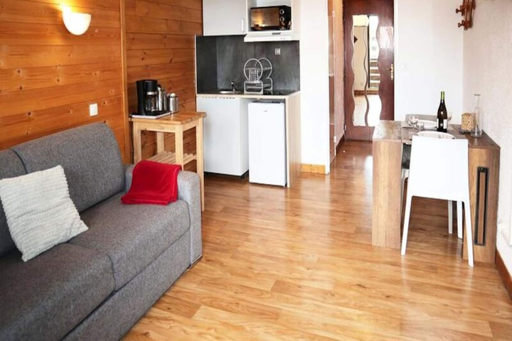 High above the serene valley of Les Orres 1650, this charming studio apartment invites you to experience the magic of the French Alps. With its prime location on the snow front, just steps away from the slopes, this residence offers the perfect blend of convenience and alpine charm. Imagine waking up to the golden glow of the sunrise over the valley, stepping out onto your private east-facing balcony, and breathing in the crisp mountain air before heading out for a day of adventure in the snow-covered peaks. Whether you're here for skiing or simply to soak in the tranquil atmosphere, this is your gateway to unforgettable moments. \n\nDesigned for two, the studio is thoughtfully furnished to ensure a cozy and comfortable stay. The living area features a double sofa bed, seamlessly connected to a kitchenette equipped for preparing hearty meals after a day on the slopes. The shower room with toilet adds practicality, while the linoleum flooring throughout creates a clean and welcoming ambiance. A ski locker on the ground floor ensures your gear is always ready for action, making your alpine escape as effortless as it is enjoyable. \n\nBeyond the residence, Les Orres 1650 offers a vibrant mix of activities and amenities. From ski schools and rental shops to cozy restaurants serving local specialties, everything you need is within easy reach. In summer, the region transforms into a haven for hikers and mountain bikers, with trails that wind through breathtaking landscapes. The nearby valley offers stunning views and opportunities for exploration, whether you're chasing adventure or seeking quiet moments in nature. \n\nChoose this studio for its unbeatable location, warm ambiance, and the promise of creating lasting memories in the heart of the French Alps.