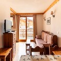 The property, along with its rustic charm and comfort, offers a 38 m² apartment designed to accommodate up to 6 people. The apartment includes a living room with a sofa bed, a separate bedroom with a double bed, and a sleeping area with two single beds. Guests can enjoy a private balcony with views of the slopes and peaks of the resort. In addition, a private ski box is available for storing equipment. While the property does not offer free activities, it provides access to an outdoor heated swimming pool and sauna cabins during the high season. The residence is also pet-friendly, allowing for an additional charge.