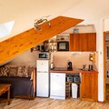 Property, along with its charming alpine atmosphere, offers comfortable accommodation for up to 6 people, ideal for families or small groups. It features a spacious double bedroom with a private balcony and a cozy sleeping area with two single bunk beds. The recently added sofa bed in the living room provides additional sleeping arrangements. The apartment boasts a large living room with two sofas, a connected television, and an electric fireplace, creating a cozy retreat after a day of outdoor activities. Pets are allowed for an additional fee. Guests can also enjoy the heated outdoor swimming pool and saunas, which are available during specific seasons. The property does not provide free activities, but its proximity to local attractions ensures plenty of options for entertainment and exploration.