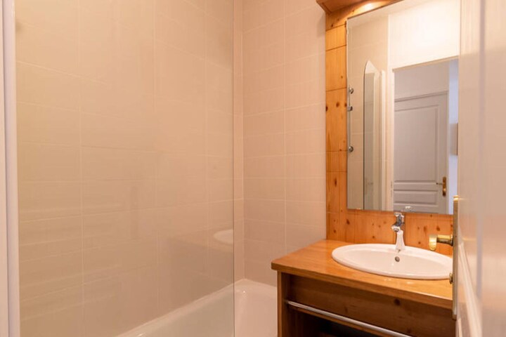 The apartment features an equipped kitchen area, providing guests with the option to prepare meals at their convenience. The kitchen includes all the essentials for self-catering, and the bathroom is complete with a shower and separate toilet. Additional services such as the rental of bath linens, bed sheets, and tea towels are available upon request, ensuring a fully tailored experience. With convenient heating and a well-designed layout, this apartment ensures a comfortable stay in the mountains.