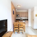 This 33 m², north-facing apartment is designed for a peaceful stay, slightly set back from the resort's central square. It features an entrance with storage, a cozy living room with a convertible sofa bed, a dining area with a fully equipped kitchen, and a separate bedroom with a double bed. The apartment can comfortably accommodate up to four people. A bathroom with a bathtub and a balcony add to the apartment's appeal, offering a perfect spot to enjoy breakfast or relax.