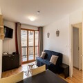 This 30m² east-facing apartment offers a peaceful and comfortable retreat, ideal for up to 4 people. It features a spacious living room with a fully equipped kitchen, perfect for preparing meals after a day on the slopes. Sleeping arrangements include a bedroom with a bunk bed and a 2-person sofa bed, plus an additional sofa bed in the living room. Guests can enjoy a variety of amenities, including a heated indoor swimming pool with a whirlpool and an outdoor terrace for sunbathing. The pool is open seasonally, with availability in both summer (June 29 – August 31, 2024) and winter (December 7, 2024 – April 12, 2025).