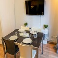 This cozy 24 m² apartment, designed for 4 people, faces west and provides a peaceful retreat after a day of adventure. The living room features an electric fireplace, a 2-seater convertible sofa, board games, and a well-equipped kitchen. A mountain corner with 2 single bunk beds ensures restful nights, while the bathroom with a bathtub offers a relaxing experience. The apartment also includes a balcony to enjoy sunny breakfasts or an evening drink with friends. For added convenience, a private ski box is provided for your equipment.