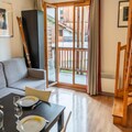 Property, along with its spacious 50 m² layout, offers a comfortable stay for families or small groups, accommodating up to 6 people. The apartment features two separate bedrooms, one with a double bed and the other with two single bunk beds, ideal for both adults and children. The living room includes a 2-seater convertible sofa, perfect for extra sleeping space. A west-facing balcony allows guests to enjoy meals or relax while taking in mountain views. Pets are not permitted, but guests can enjoy additional services like the option to order fresh bread and pastries daily from the communal lounge. A private ski locker is provided to store winter sports equipment. The residence also offers a heated indoor swimming pool and whirlpool, available seasonally, enhancing the overall stay with opportunities for relaxation after a day on the slopes.