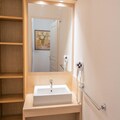 The apartment is equipped with a fully functional kitchen area, including modern appliances such as an oven, refrigerator, and stovetop, allowing guests to prepare their own meals during their stay. The living space is designed for comfort and functionality, with plenty of storage and a spacious bathroom featuring a bathtub, hair dryer, and ample storage. The property is heated, ensuring a cozy atmosphere throughout the winter season. Guests also have the added convenience of ordering breakfast items directly from the residence, further enhancing the stay. With all these amenities, the property provides a well-rounded, family-friendly base for a ski holiday.