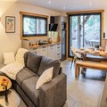 The kitchen combines modern appliances with practicality, including a Nespresso coffee machine, toaster, kettle, dishwasher, combined microwave oven, freezer, and a washing machine with dryer. Guests can gather for cozy dinners using the fondue or raclette machines provided. The dining area seats up to 8 people, creating a welcoming space for shared meals and memorable family evenings. Additional amenities include a ski box for equipment storage, underfloor heating throughout the property, and modern bathrooms with walk-in showers and heated towel rails. With thoughtful touches and a stylish alpine ambiance, this property offers guests both comfort and convenience.