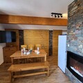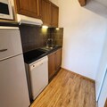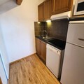 This charming duplex apartment, designed for up to 6 guests, is located on the first floor with direct access to the pool via an elevator. On the ground floor, you’ll find a cozy bedroom with a double bed and a private balcony with an east-facing view. Upstairs, the mountain-style living room includes a sofa bed, a fully equipped kitchen, and a dining table for six, perfect for family meals. The balcony offers a 180° view of the resort and surrounding mountains. The apartment also features a bathroom with a bathtub, a separate toilet, and a sleeping area with two single bunk beds.