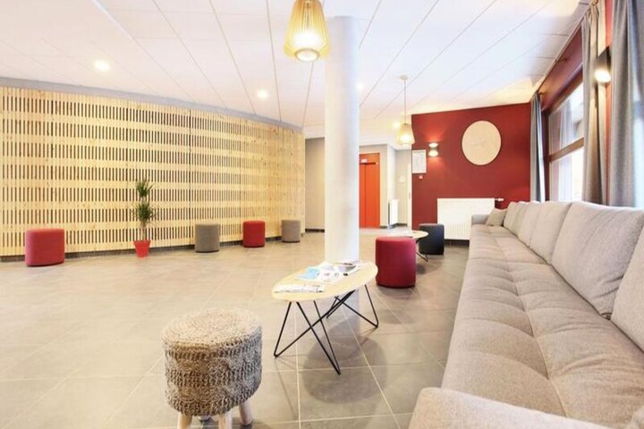 The apartment comes with modern amenities like a heated indoor swimming pool, a hammam, and free Wi-Fi. It also features a bathroom with a shower and separate WC. Additional services include bed linen and bathroom towels, available for a change at an extra charge, and a baby kit upon request. The property is accessible for people with reduced mobility, with some accommodations offering suitable adjustments.