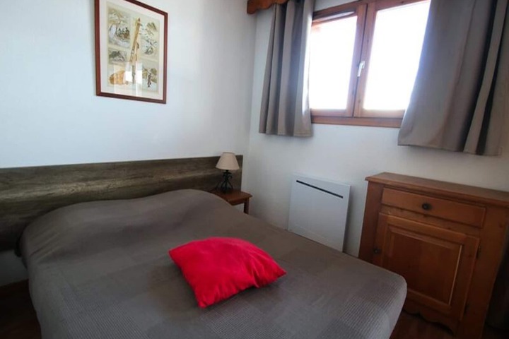 High above the valley, where the crisp alpine air invigorates the senses, this cozy apartment in the La Dame Blanche residence offers a perfect retreat for mountain enthusiasts. With its charming balcony overlooking the slopes of Puy Saint Vincent 1800, every moment here feels like a celebration of nature and tranquility. Whether you're sipping coffee as the sun rises or unwinding after a day of adventure, the atmosphere is undeniably magical. \n\nDesigned for 4-6 guests, the apartment boasts a well-equipped kitchen with modern appliances including a microwave, dishwasher, and Senseo coffee machine. The living room features a pull-out sofa bed, a flat-screen TV, and a dining area that invites you to share meals and stories. The sleeping arrangements include a comfortable double bedroom and a cozy cabin room with twin beds, both furnished with duvets and pillows for restful nights. A separate bathroom and WC ensure convenience, while free WiFi keeps you connected. \n\nThe residence itself is a haven of amenities. Ski-in/ski-out access lets you hit the slopes effortlessly, while the heated outdoor pool and sauna provide relaxation after an active day. On-site facilities such as a bakery, restaurant, and ski rental shop make your stay seamless. In summer, the pool opens its doors, offering a refreshing escape amidst the mountains. \n\nWhether you're here for winter sports or summer hikes, Puy Saint Vincent 1800 offers endless opportunities for exploration. The nearby trails, breathtaking views, and charming alpine village create a setting that's both invigorating and serene. Choose this apartment for a holiday that blends comfort, adventure, and the timeless allure of the French Alps.