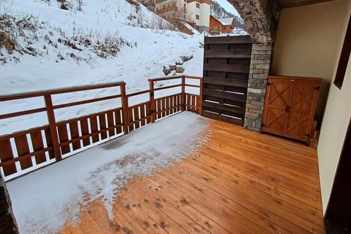 High above the serene valley of Puy Saint Vincent, this charming apartment in the La Dame Blanche residence offers a perfect blend of alpine comfort and modern amenities. Imagine waking up to the crisp mountain air, stepping onto your private balcony with a warm coffee in hand, and gazing out at the snow-dusted peaks that surround you. Whether you're here for the thrill of skiing or the tranquility of summer hikes, this retreat promises an unforgettable escape in the heart of the French Alps. \n\nInside, the 34m² apartment is thoughtfully designed to accommodate up to six guests. The cozy living room features a pull-out sofa bed, a dining table, and a flat-screen TV, while the fully equipped kitchen invites you to prepare hearty meals after a day of adventure. The sleeping arrangements include a serene double bedroom, a cabin room with two single beds, and a sofa bed in the living area, all with plush duvets and pillows for a restful night. A separate bathroom and WC add to the convenience, ensuring a comfortable stay for families and small groups alike.\n\nThe residence itself is a haven of relaxation and activity. With direct access to the ski slopes, you can hit the powdery trails straight from your doorstep. In summer, the heated outdoor pool becomes a refreshing oasis, while the sauna offers a cozy retreat for winter evenings. On-site amenities include a restaurant, snack bar, bakery, and a ski rental shop, making it easy to enjoy your holiday without venturing far. \n\nWhether you're exploring the breathtaking trails of the Écrins National Park, indulging in local delicacies at nearby eateries, or simply soaking in the alpine ambiance, this apartment is your gateway to the best of Puy Saint Vincent. Book your stay and create memories that will last a lifetime.