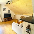 Inside, the apartment is equipped with a fully fitted kitchen, including a dishwasher, coffee maker, and kettle, perfect for preparing meals after a day on the slopes. The bathroom has a shower and vanity unit, and there is a separate toilet for added convenience. A dining area is available, with access to the balcony to enjoy the fresh mountain air. A Wi-Fi connection ensures you stay connected during your stay.