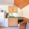 - An entrance with cupboard, the living room (No TV) gives access to the balcony, it opens onto a kitchen area with dishwasher, refrigerator, 4 induction hobs, oven, microwave, "Senseo" coffee maker, waffle maker, kettle ..