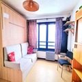 High above the picturesque Vallouise valley, this charming apartment offers a cozy retreat for couples or small groups seeking a tranquil alpine escape. With direct ski-in/ski-out access, you can step out of the residence and onto the slopes, making it an ideal choice for winter sports enthusiasts. The breathtaking views from the 6th floor provide a serene backdrop for your mountain getaway, whether you're enjoying the snowy landscapes or the lush greenery of summer. \n\nThoughtfully designed for up to three guests, the apartment features a compact yet functional layout. The entrance opens to a sleeping alcove with bunk beds, perfect for children or friends, and a bathroom with a shower and toilet. Beyond the dividing door, the living area invites relaxation with a comfortable sofa bed, a dining space, and a kitchenette equipped with a mini-oven for preparing simple meals. Free condominium WiFi ensures you stay connected while enjoying the peace of the mountains. \n\nThe location is unbeatable for exploring the region, with ski lifts and trails just steps away. In winter, the slopes beckon for skiing and snowboarding, while summer transforms the area into a haven for hikers, cyclists, and nature lovers. The charming village of Vallouise, with its traditional alpine architecture and local shops, is a short distance away, offering a taste of authentic French mountain life. \n\nWhether you're here to carve through fresh powder or bask in the tranquility of the Alps, this apartment provides the perfect base for unforgettable adventures. Book your stay today and immerse yourself in the beauty of the Vallouise valley.
