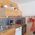 Inside, the apartment is thoughtfully designed for comfort and convenience. The open-plan living area features a fully equipped kitchen with modern appliances, including an oven, large refrigerator, dishwasher, and microwave, ensuring you can prepare hearty meals after a day on the slopes. Relax in the lounge area with a sofa bed, armchair, and flat-screen TV, or retreat to the bedroom, which boasts two double beds and ample wardrobe space. The sleek bathroom includes a walk-in shower, and free condominium WiFi keeps you connected throughout your stay.