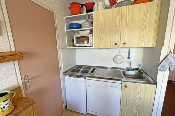 High above the serene alpine village of Risoul 1850, this charming apartment offers a cozy retreat for up to six guests. With breathtaking views of the surrounding peaks and easy access to the slopes, it’s a haven for ski enthusiasts and nature lovers alike. Whether you’re seeking thrilling winter adventures or tranquil summer hikes, this residence places you at the heart of the stunning Hautes-Alpes region. The crisp mountain air and picturesque scenery create an unforgettable backdrop for your holiday escape. \n\nStep inside the 30m² apartment and discover a thoughtfully designed space that combines comfort and practicality. The entrance features a sleeping alcove with bunk beds, perfect for children or friends. The main room invites relaxation with a sofa bed, TV, and ample storage, while the equipped kitchenette includes everything you need to prepare hearty meals after a day outdoors—electric hob, dishwasher, mini-oven, and even a fondue set for authentic alpine evenings. A separate bedroom with a double bed ensures restful nights, and the bathroom with a bathtub and toilet adds convenience to your stay. Ski lockers on the ground floor make gearing up for the slopes effortless. \n\nBeyond the apartment, Risoul 1850 offers a vibrant mix of activities and amenities. From charming local restaurants serving regional specialties to ski schools and rental shops, everything you need is within easy reach. In summer, explore lush hiking trails, cycle through scenic routes, or simply bask in the beauty of the Alps. Nearby attractions include the Écrins National Park and the historic town of Guillestre, perfect for day trips. \n\nWhether you’re traveling with family, friends, or even your furry companion, this apartment is the ideal base for creating lasting memories in the French Alps. With its welcoming atmosphere and unbeatable location, your alpine adventure awaits.