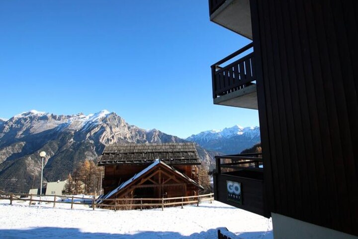 High above the picturesque slopes of Puy Saint Vincent 1800, this charming apartment in the La Dame Blanche residence offers a cozy retreat with breathtaking mountain views. Imagine sipping your morning coffee on the private balcony as the sun rises over the snow-capped peaks, or unwinding in the heated outdoor pool during the warmer months. With direct access to the ski slopes, this property is a haven for winter sports enthusiasts and a peaceful escape for summer adventurers alike. \n\nInside, the apartment is thoughtfully designed for comfort and convenience. The living room features a pull-out sofa bed, a flat-screen TV, and a dining table for shared meals. The equipped kitchen includes modern appliances such as a microwave, ceramic hob, dishwasher, and coffee maker, ensuring you have everything you need to prepare hearty meals after a day outdoors. The sleeping arrangements cater to families and groups, with a double bedroom and a cozy cabin room with twin beds, all furnished with fresh duvets and pillows. A separate bathroom and WC add to the practicality of the space. \n\nThe residence itself boasts excellent amenities, including a restaurant, snack bar, bakery, and ski rental shop right at your doorstep. During the summer, guests can enjoy the heated outdoor pool, while the sauna offers a relaxing retreat year-round. Additional services such as linen and towel rentals, a coin-operated laundromat, and covered parking ensure a stress-free stay. \n\nWhether you’re here to carve through pristine slopes in winter or explore alpine trails in summer, this apartment is the perfect base for your adventures. Let the beauty of the French Alps and the welcoming atmosphere of La Dame Blanche create memories to last a lifetime.