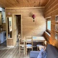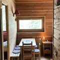 The living room features a convertible sofa, while the fully equipped separate kitchen is perfect for preparing meals after a day on the slopes. The apartment includes one bedroom with a double bed and a single bed above, providing ample space for up to five guests. It also has a bathroom and a separate toilet.