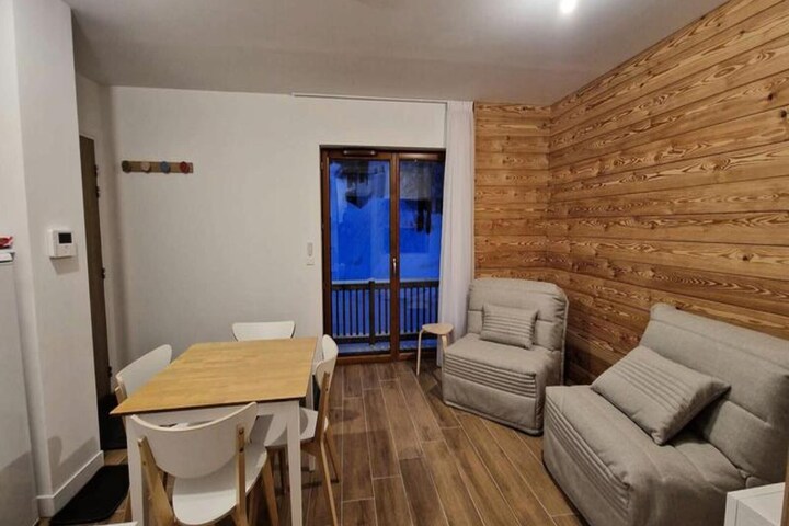 Boost your mountain vacation with this brand new T1 apartment in the Vars resort, ideally located close to the slopes, ESF, and the "Ski Soleil" shopping center, as well as a bakery. The 30 m² apartment is designed to accommodate up to 3 people comfortably, featuring a living room with a dining area and two convertible armchairs (each functioning as single beds, 80x190 cm).