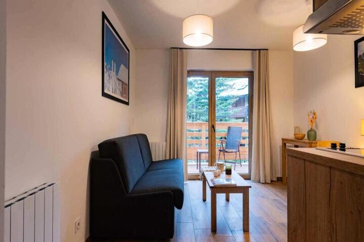 This cozy studio, ranging from 20 to 25 m², offers a perfect retreat for those seeking comfort and convenience. The living area includes a comfortable sofa bed, ideal for relaxation or accommodating extra guests. The fully equipped kitchenette allows for easy meal preparation, while the bathroom or shower room and separate WC ensure privacy and comfort. A private balcony provides a lovely space to enjoy the fresh air and views of the surroundings.