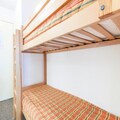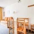 Property, along with its practical and compact layout, comfortably accommodates up to 5 people. The living room features 2 single sofa beds, one of which includes a pull-out bed suitable for children, and there is a cabin area with a bunk bed. The apartment also includes a dining area with a table, chairs, and a bench. A furnished balcony adds to the charm, providing a relaxing outdoor space with tree-lined views. The residence is pet-friendly (subject to conditions) and provides ski lockers for guests. Additional services such as Wi-Fi, bed and bathroom linen, and cleaning are available for an extra charge. End-of-stay cleaning is mandatory.