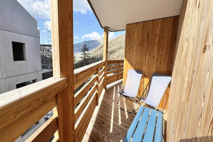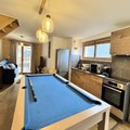 In the vibrant heart of Vars Les Claux, this newly completed residence offers the perfect alpine retreat for families and groups seeking a blend of comfort and adventure. Just 200 meters from the snow front and steps away from local shops, this spacious apartment is your gateway to the breathtaking Forêt Blanche ski area. Whether you’re here to carve through fresh powder or enjoy the serene mountain atmosphere, this property provides an ideal base for your holiday. \n\nThe apartment accommodates up to 10 guests across its thoughtfully designed layout. On the ground floor, a cozy double bedroom with an en-suite shower room ensures privacy, while a separate toilet adds convenience. Upstairs, you’ll find a second shower room, a bedroom with a bunk bed and terrace access, and another room with three single beds that can be converted into a double. The living area features two sofa beds, a large dining space, and a fully equipped kitchen with modern appliances, including a Nespresso machine and dishwasher. The highlight? A convertible dining table that transforms into a pool table, perfect for entertaining after a day on the slopes. \n\nStep outside onto the expansive terrace or balcony to soak in panoramic views of the surrounding peaks. A private parking space adds to the convenience, making it easy to explore the resort and beyond. While the residence is complete, ongoing construction in the neighboring complex may occasionally be noticeable. \n\nWith its prime location, modern amenities, and stunning vistas, this apartment is an exceptional choice for those looking to experience the magic of the mountains. Whether it’s skiing, hiking, or simply unwinding in a tranquil setting, your alpine escape awaits.