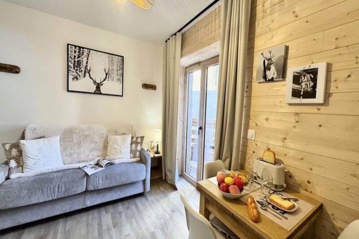 In the vibrant heart of Vars Les Claux resort, this cozy ground-floor studio apartment offers an inviting retreat just steps away from the slopes and local shops. Imagine waking up to the crisp mountain air, enjoying your morning coffee on the private terrace, and heading out for a day of alpine adventures with the snow front only 200 meters away. Whether you're here to ski, hike, or simply relax, this charming residence places you at the center of it all. \n\nDesigned for two guests, the apartment combines comfort and practicality with a bright living room that opens onto the terrace, creating a seamless indoor-outdoor experience. The 160x200 sofa bed ensures restful nights, while the fully equipped kitchen—complete with a microwave, dishwasher, Nespresso coffee machine, and refrigerator—makes meal preparation effortless. Additional amenities like a television and private covered parking add convenience to your stay, while linens and end-of-stay cleaning are included for a worry-free experience. \n\nVars Les Claux is renowned for its lively atmosphere and proximity to the slopes, making it a favorite destination for winter sports enthusiasts and summer adventurers alike. Explore the nearby trails, indulge in local cuisine, or simply soak in the breathtaking alpine views. While the residence is completed, please note that construction work is ongoing in the neighboring complex, which may affect the surroundings. \n\nPerfect for couples seeking a peaceful mountain escape, this smoke-free and pet-free apartment is your gateway to the beauty of the French Alps. Book your stay today and create unforgettable memories in this charming alpine haven.