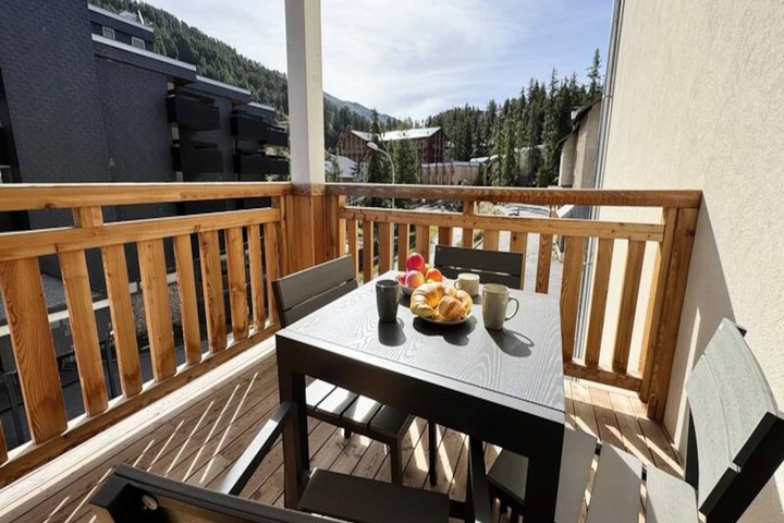 In the vibrant heart of Vars Les Claux resort, this delightful apartment offers a cozy retreat just 200 meters from the snow front, ensuring effortless access to the slopes. Wake up to the golden glow of the morning sun on your east-facing terrace, perfect for enjoying breakfast while soaking in the crisp mountain air. Whether you're here for thrilling winter sports or serene summer hikes, this residence places you at the center of alpine charm and adventure. The nearby shops and services make it easy to immerse yourself in the lively atmosphere of the resort, while the surrounding peaks promise breathtaking views and unforgettable moments. \n\nDesigned for up to six guests, the apartment boasts a thoughtful layout that combines comfort and practicality. The double bedroom is bathed in natural light, creating a peaceful haven for restful nights. Two single beds can be arranged to suit your needs, whether in the living room or bedroom, offering flexibility for families or friends. The spacious living area features a fully equipped kitchen with modern appliances, a dining table, a double sofa bed, and a television, ensuring a welcoming space to relax after a day of exploration. The bathroom is conveniently fitted with a toilet, and amenities like a dishwasher, washing machine, and induction hob make your stay seamless. \n\nWith private covered parking included, you can enjoy hassle-free access to your vehicle, while the Vars agency nearby offers ski passes and equipment rentals to enhance your holiday experience. Although construction work is ongoing in the neighboring complex, the completed residence guarantees a tranquil and comfortable stay. Pets are not allowed, and the apartment is strictly non-smoking, ensuring a clean and pleasant environment for all guests. \n\nWhether you're drawn to the slopes or the serene beauty of the mountains, this charming apartment in Vars Les Claux is your gateway to an unforgettable alpine escape.