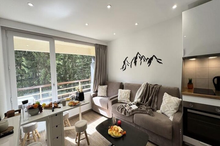 Thoughtfully designed for up to three guests, the apartment features a bright and inviting living space with two comfortable sofa beds, one single and one double, each with real mattresses for a restful night's sleep. The fully equipped modern kitchen includes everything you need to prepare hearty meals, from a refrigerator and oven to a Bosch coffee maker and even raclette and fondue sets for an authentic alpine dining experience. A well-appointed bathroom, a ski locker for your gear, and thoughtful touches like a television and hairdryer ensure your stay is as convenient as it is comfortable.