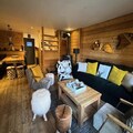The first floor boasts a large living room with a fireplace, an open kitchen, and a terrace with serene views of the fir trees. Upstairs, two bedrooms with double beds and a master suite under the roof, complete with a bathtub and stunning views, offer comfortable accommodations. With a fully equipped kitchen, modern amenities, and thoughtful touches like a Nespresso machine and raclette set, this chalet is perfect for a family or group getaway.
