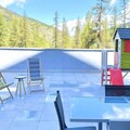 The Forêt Blanche Agency offers a spacious 53m² apartment in Vars les Claux, featuring a large open-plan living room and kitchen that leads to a 140m² terrace, ideal for enjoying the outdoors. The terrace is equipped with a children's cabin, table, chairs, and sleds. The apartment includes a double bedroom with a 160 cm bed, a second closed bedroom with two 80 cm bunk beds, and an additional bed for a child. There is also a shower room with a WC.