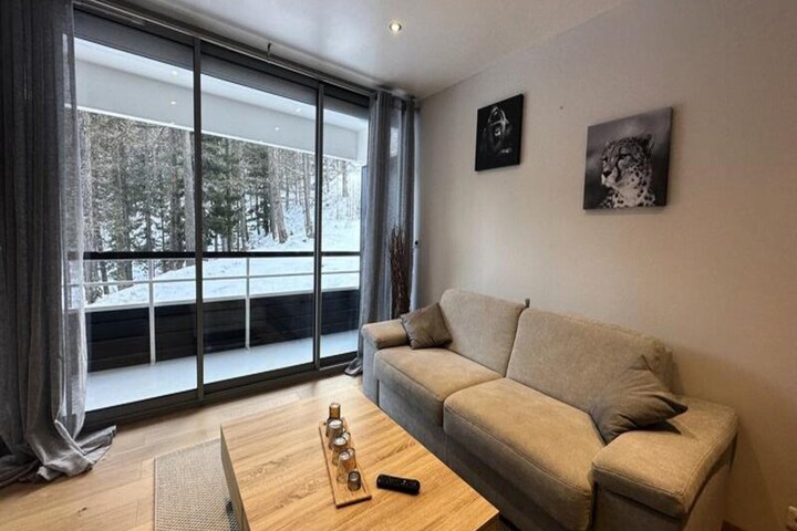 This charming studio apartment is ideally located at the foot of the slopes, offering direct access to skiing, the famous Point Show, and ski schools. With an east-facing orientation, enjoy a sunny breakfast on the terrace while taking in the surrounding mountain views. Perfect for a mountain getaway with friends or family, the studio includes a cozy mountain corner with an open bunk bed (ideal for children), a double sofa bed in the living room, and a well-equipped kitchen. The kitchen features a fridge, microwave (which doubles as a traditional oven), induction hobs, a Dolce Gusto coffee maker, and both a fondue and raclette set.