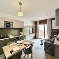 The apartment is fully equipped for your convenience, with amenities such as a freezer, refrigerator, raclette machine, toaster, hand blender, oven, induction hob, microwave, dishwasher, kettle, and filter coffee machine. Sheets, towels, and end-of-stay cleaning are included in the rental, with beds made upon arrival.