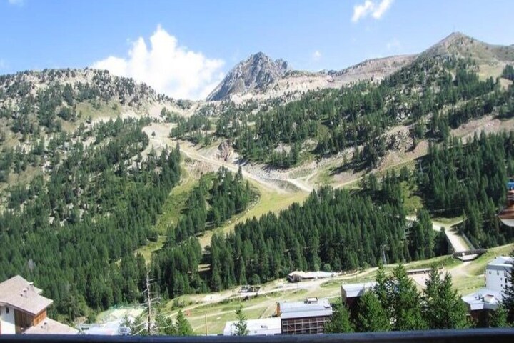 This 40 m² apartment sleeps up to 6 people and is located in a mountain residence at the top of the resort, just 5 minutes from the ski lifts. It features a living room with a pull-out sofa bed, access to a large south-facing terrace, dining area, and television. The American kitchen includes a mini oven, microwave, 4-burner ceramic hob, hood, and refrigerator. The apartment also has a large entrance with 4 bunk beds (for children) and 1 single bed. Pets are not allowed.