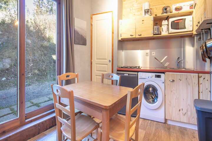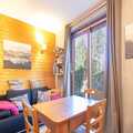 The open-plan electric kitchen is fully equipped with a refrigerator, microwave, oven, dishwasher, coffee machine, toaster, and kettle, as well as dishes, cutlery, and kitchen utensils. Whether you're preparing meals for a day of skiing or just relaxing, this kitchen has everything you need. With its great location, comfortable amenities, and cozy atmosphere, this apartment is the perfect base for your mountain getaway.