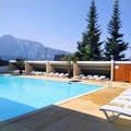 The residence is thoughtfully divided into eight charming villages, each featuring small, wooden buildings that exude warmth and coziness. Inside, the apartments are designed for comfort and practicality, offering a living room with a double sofa bed, a fully equipped kitchenette, a bedroom with either a double bed or two singles, a sleeping alcove with bunk beds, and a private balcony or terrace to soak in the breathtaking views. Modern amenities like a separate toilet, a bathroom or shower room, and the option to bring your furry companion make this a welcoming home away from home.
