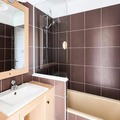 The apartment features a fully equipped kitchen, allowing guests to prepare their own meals with ease. The bathroom is well-appointed, and a separate toilet ensures added comfort. Guests can relax by the outdoor swimming pool, open daily from 4 p.m. to 7:30 p.m., or unwind in the on-site sauna (available for a fee). Free outdoor parking is available, or guests can opt for the covered Bergers car park for an additional charge.