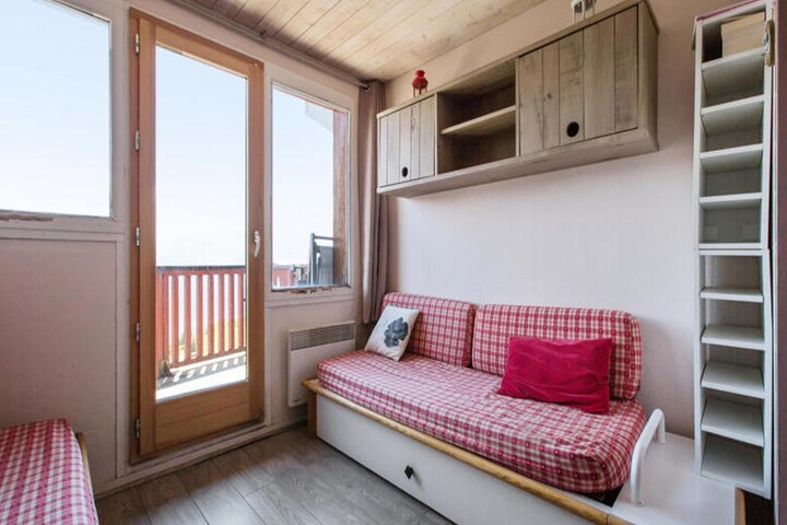 This charming apartment accommodates up to 5 guests with a living room featuring two sofa beds (one with a trundle bed) and a separate bedroom with a double bed. It is pet-friendly for an additional charge, with prior authorization required. The apartment is equipped with a television, a balcony offering mountain views, and a dishwasher for added convenience. Wi-Fi is available for an extra fee, and bed linens and towels can be provided for an additional charge. Housekeeping is available at the end of the stay, either by the guest or for a fee upon check-in.