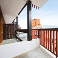 The apartment includes a well-equipped kitchen, open to the living room, perfect for preparing meals. There are 2 bathrooms—one with a bathtub, the other with a shower, plus a separate toilet. The balcony features a deck chair, ideal for relaxing while taking in the mountain view. For convenience, covered parking is available for an additional charge, and a heated outdoor swimming pool is nearby for extra relaxation.