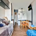This cozy apartment offers a living space with two sofa beds and a trundle bed, accommodating up to three guests. The cabin area, separated by a door, features bunk beds for additional guests or children. Pets are allowed with an extra charge and subject to owner approval. Enjoy Wi-Fi (at an additional cost), television, and the option of a baby kit (on request). Bed linens and towels are available for an extra charge, and end-of-stay cleaning is mandatory.