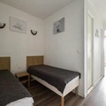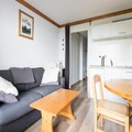 This cozy apartment in Alpe d'Huez offers a comfortable stay for families or small groups. It includes a living room with a sofa bed, a cabin area with 2 single beds, and a dining table with 4 chairs. The apartment is pet-friendly, allowing pets with prior authorization and an additional charge. Other amenities include a television, balcony with mountain views, and parking. A private parking space is provided, with additional public parking options nearby. Bed linen and towels are available for an extra charge, and a mandatory end-of-stay cleaning service applies.
