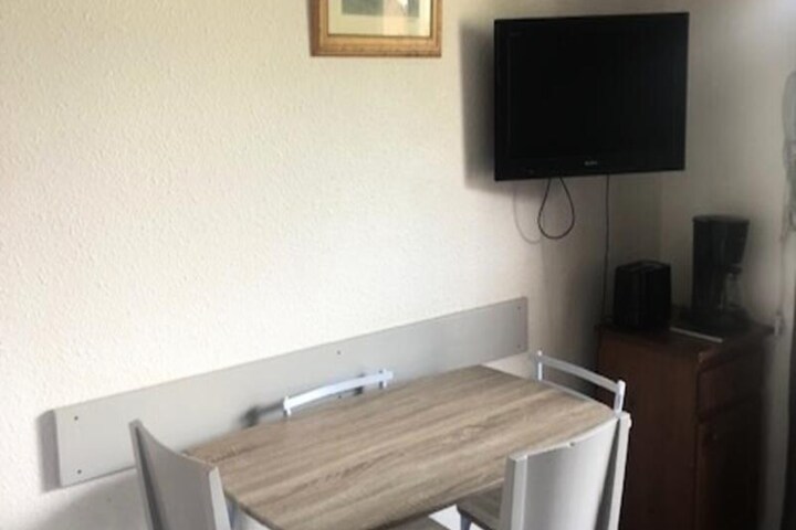 The apartment is equipped with a fully functional kitchen, open to the living room, perfect for preparing meals. The bathroom features a bathtub, and there is a separate toilet for convenience. Recent renovations, including a freshly painted kitchen and living room, along with a new heat transfer fluid radiator, ensure a cozy and comfortable stay. Other amenities include a baby kit (subject to availability), ski locker, and access to a sauna (for an extra fee).