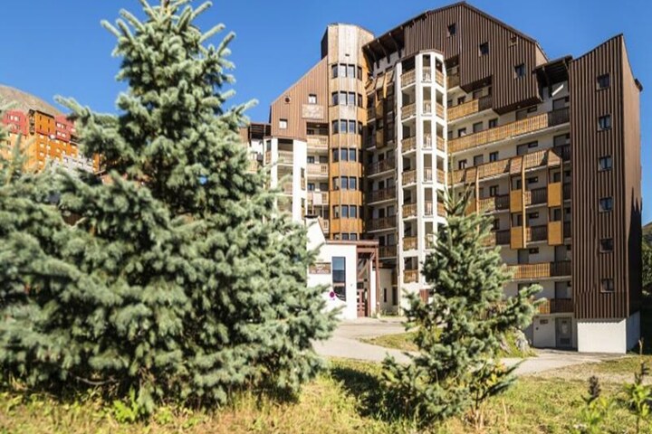 This apartment in the heart of the Alps accommodates up to 6 guests, featuring a living room with a sofa bed and trundle bed (sleeps 2), plus a cabin area with 2 single bunk beds. The master bedroom offers a queen-size bed (160 cm). It is pet-friendly, with an additional charge and prior approval required. Amenities include a large television, a safe, and a ski locker for convenience. Guests can enjoy a private balcony with outdoor seating. Bed linen, towels, and end-of-stay cleaning are available for an additional charge.