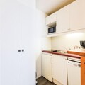 The apartment includes a well-equipped kitchen, open to the living room, ideal for preparing meals. The bathroom features a bathtub, and a separate toilet adds convenience. A spacious dining area with a table and 5 chairs is perfect for family meals. Paid public parking is available 50 meters from the residence, and additional services like daily cleaning and linen change can be arranged for an extra cost.