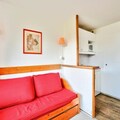 This cozy accommodation offers space for up to 4 guests, featuring a living room with a sofa bed and trundle bed (sleeps 2) and a private bedroom with a double bed. The property is pet-friendly for an additional fee and prior approval. Guests will enjoy a balcony with stunning mountain views, ski-in/ski-out access, and conveniences such as a safe, ski locker, and television. Bed linen, towels, and end-of-stay cleaning are available for a supplementary cost, ensuring a hassle-free stay.