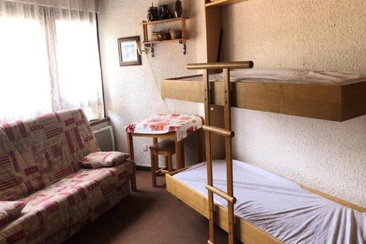 This cozy studio, located in the Maison de l'Alpe building in the Viel Alpe area, offers a comfortable stay for up to four guests. The living room features a sofa bed and two folding bunk beds suitable for children, making it an ideal choice for families or small groups. A flat-screen TV provides entertainment, while heating ensures comfort during your stay. Please note that pets are not allowed, and bed linen, towels, and end-of-stay cleaning are not included.