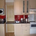 The apartment is equipped with a well-appointed kitchen, including 4 ceramic hobs, an oven, microwave, refrigerator, and dishwasher, ideal for preparing meals. The bathroom features a shower, washer-dryer, and separate WC for added convenience. Heating ensures a cozy environment, and bed linen, towels, and end-of-stay cleaning are not included, offering flexibility during your stay.